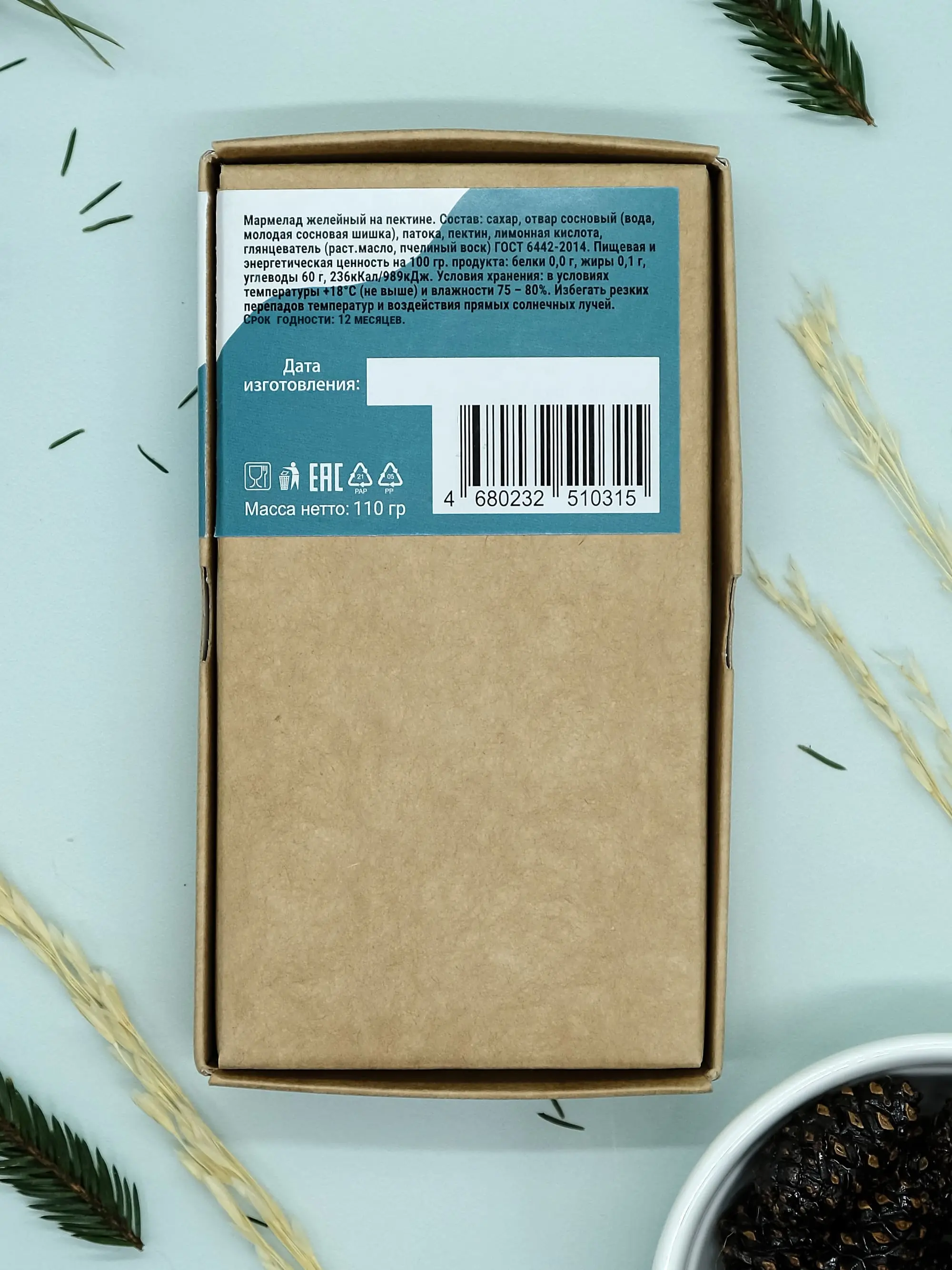 Состав мармелада «Таежный» – сахар, отвар из сосновой шишки, патока, пектин, лимонная кислота, растительное масло, пчелиный воск.