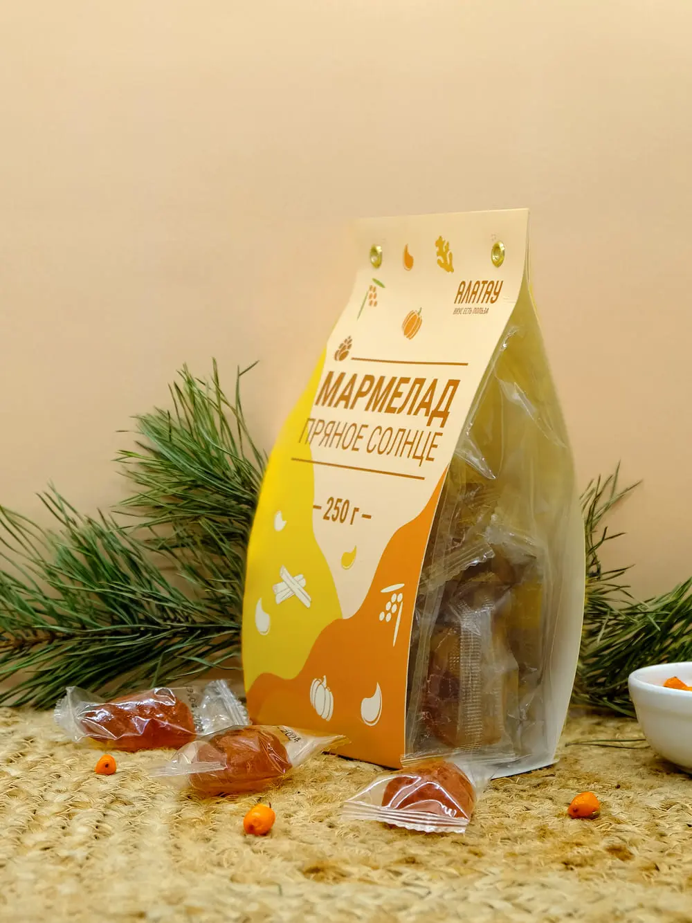 —Мармелад ягодный Пряное Солнце облепиховый с пряностями, 250 гр