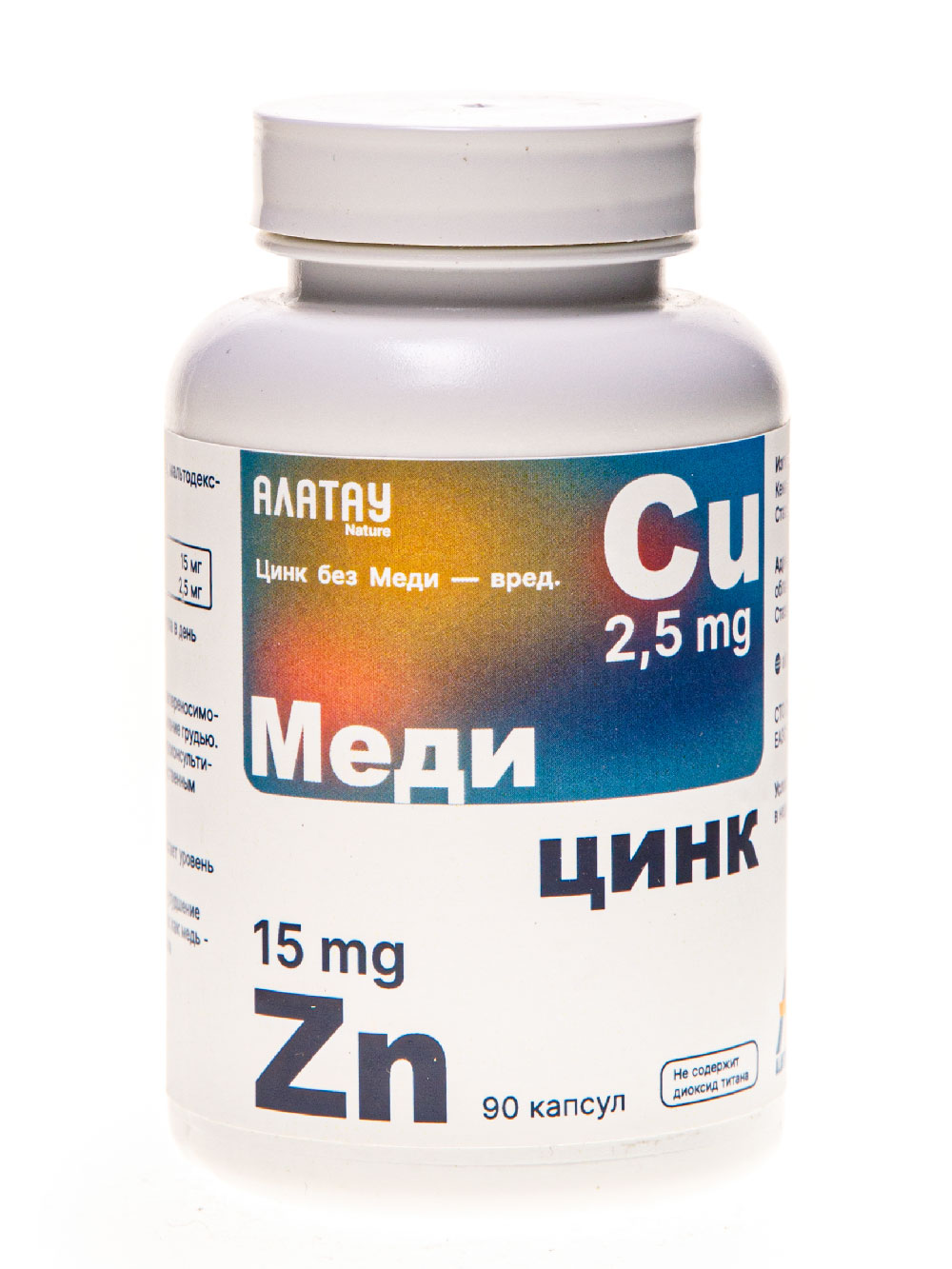 Содержание в 2-х капсулах: цинк 15 мг, медь 2,5 мг.